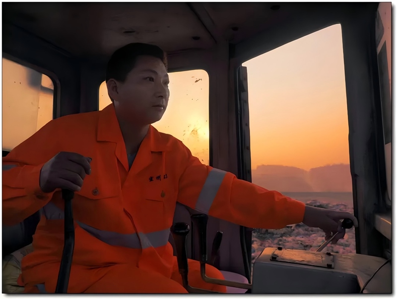 徐開鋒臨危受命,在填埋場當(dāng)推土機(jī)駕駛員。每天的工作就是把400多噸的垃圾推平壓實(shí)。每到夏、秋季節(jié),臭氣熏天的垃圾引來更多的蒼蠅“光顧”,用徐開鋒同事的話說,“遠(yuǎn)看徐開鋒就好像穿了一副‘將軍鎧甲',蒼蠅扒在他的臉上、手上、背上……”彼時的徐開鋒已經(jīng)是一名7歲女孩的父親,但為了應(yīng)對繁重的工作,他每天5點(diǎn)鐘就騎著摩托車出了門,等到晚上回家時,女兒多半已經(jīng)睡著了!邦I(lǐng)導(dǎo)把我安排到這個崗位,我就要崗位上做出個樣!”,正是胸懷這份“執(zhí)拗”,他在填埋場推土機(jī)駕駛員崗位上堅持了11年。